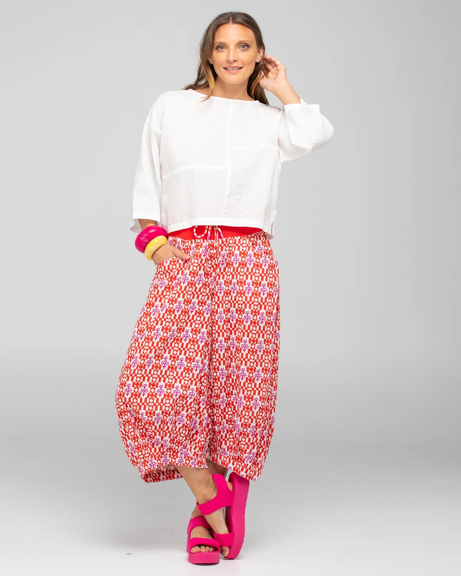 Say Ciao to Naples Pomodoro – our latest block print that turns up the heat in vibrant shades of red, pink, and orange. A modern take on traditional block printing, this eye-catching design fuses bold geometric shapes with delicate floral motifs, creating a print that feels both timeless and fresh. Designed for mixing and matching, Naples Pomodoro pairs perfectly with our hot-pink seasonal basics for a look that’s full of energy and personality. Whether you’re dressing it up for a night out or keeping it playful for daywear, this print is all about making a statement while staying true to your love of colour.