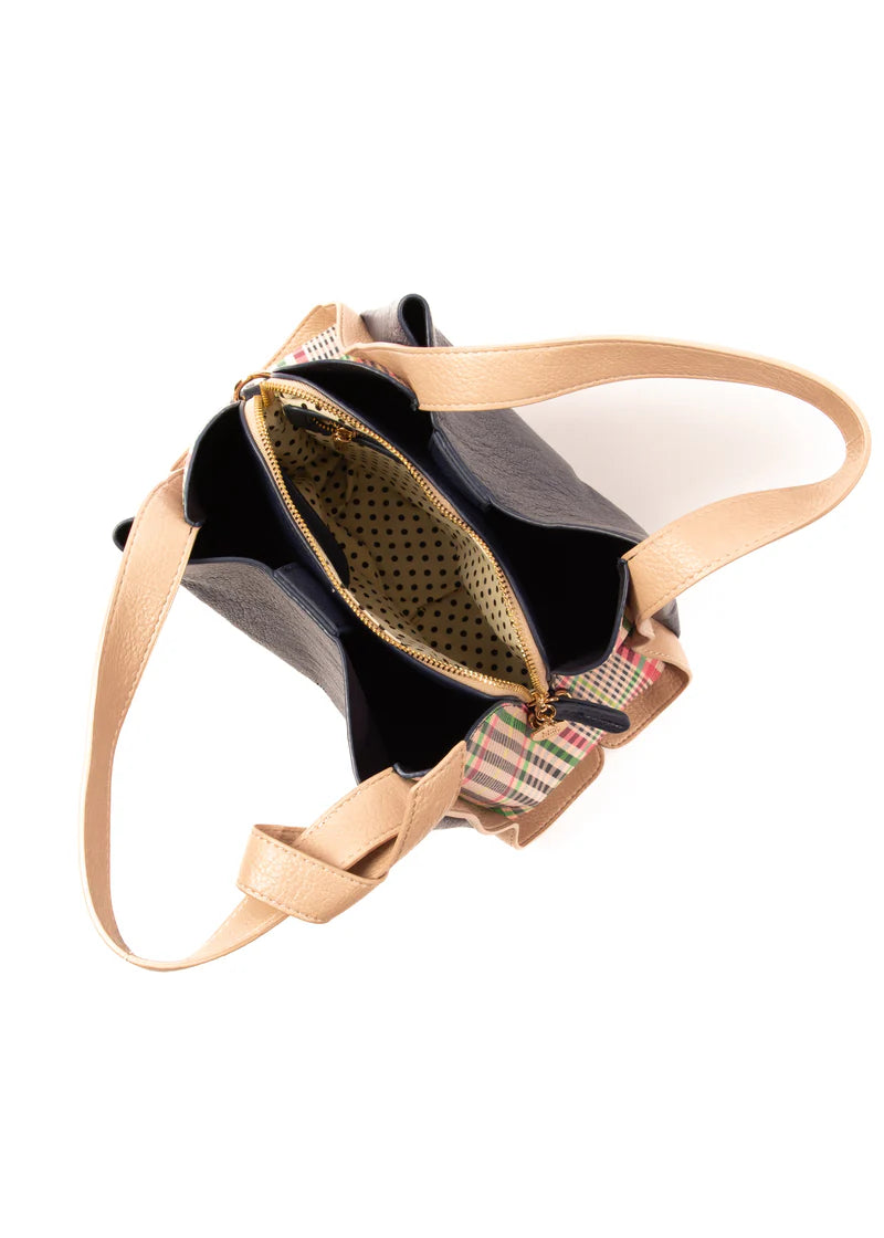 Meet Tanya, she's sophisticated and embodies class & style. Our new gingham print features on this gorgeous handbag, with the navy and pink colourway that you know and love. Whether you prefer to carry your bag on your arm or opt for a hands-free crossbody style, the Tanya offers both options. Just look at her standing upright on her own.